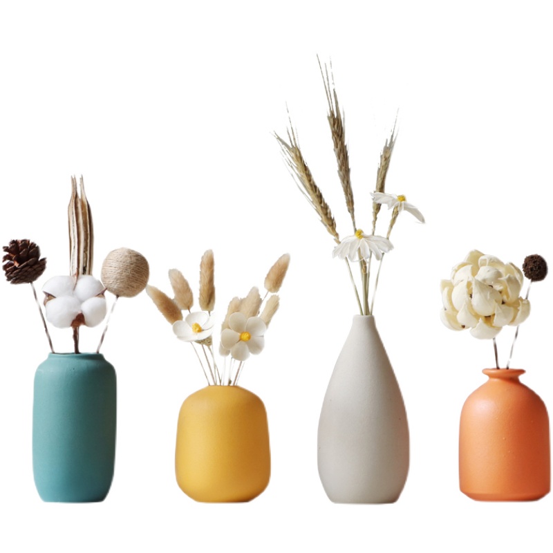 北欧风轻奢陶瓷小花瓶摆件家居客厅插花创意干花装饰品电视柜摆设