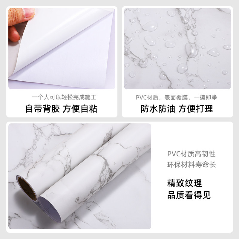 哑光白色加厚仿大理石贴纸大花白鱼肚白自粘厨房防油防水大理石纹
