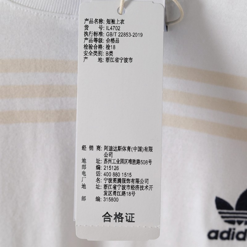 Adidas 阿迪达斯 三叶草 男款运动休闲舒适透气条纹短袖T恤IL4702