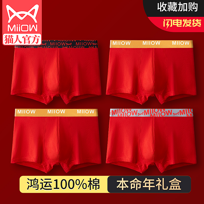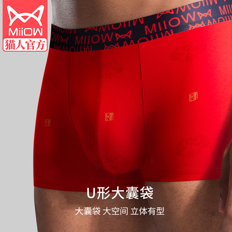 猫人本命年内裤男士平角纯棉大红色礼物蛇年属蛇四角短裤男生内裤