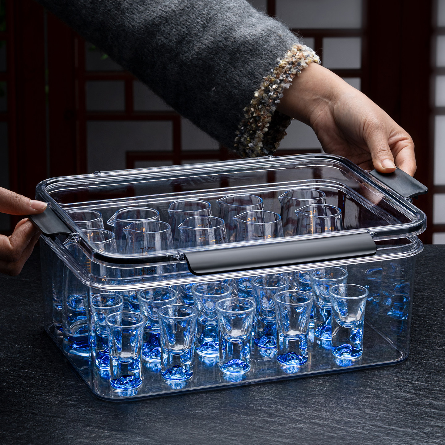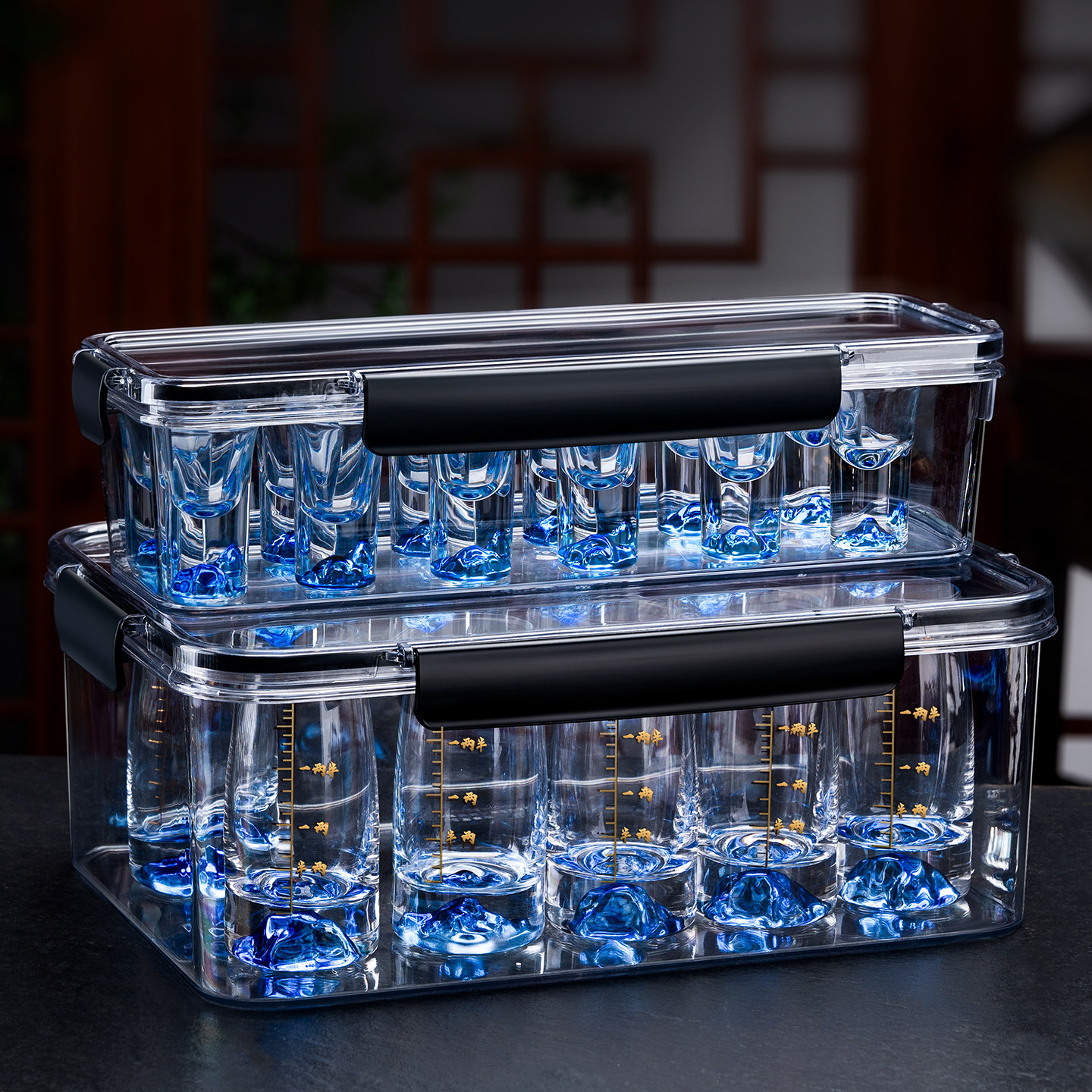 白酒杯分酒器套装收纳盒防尘带盖
