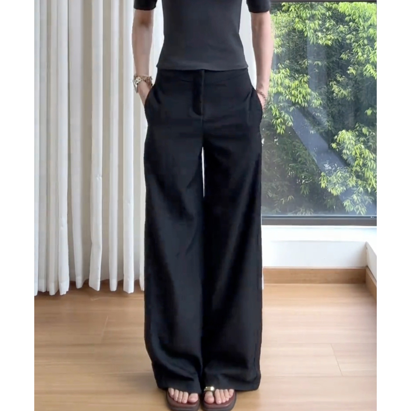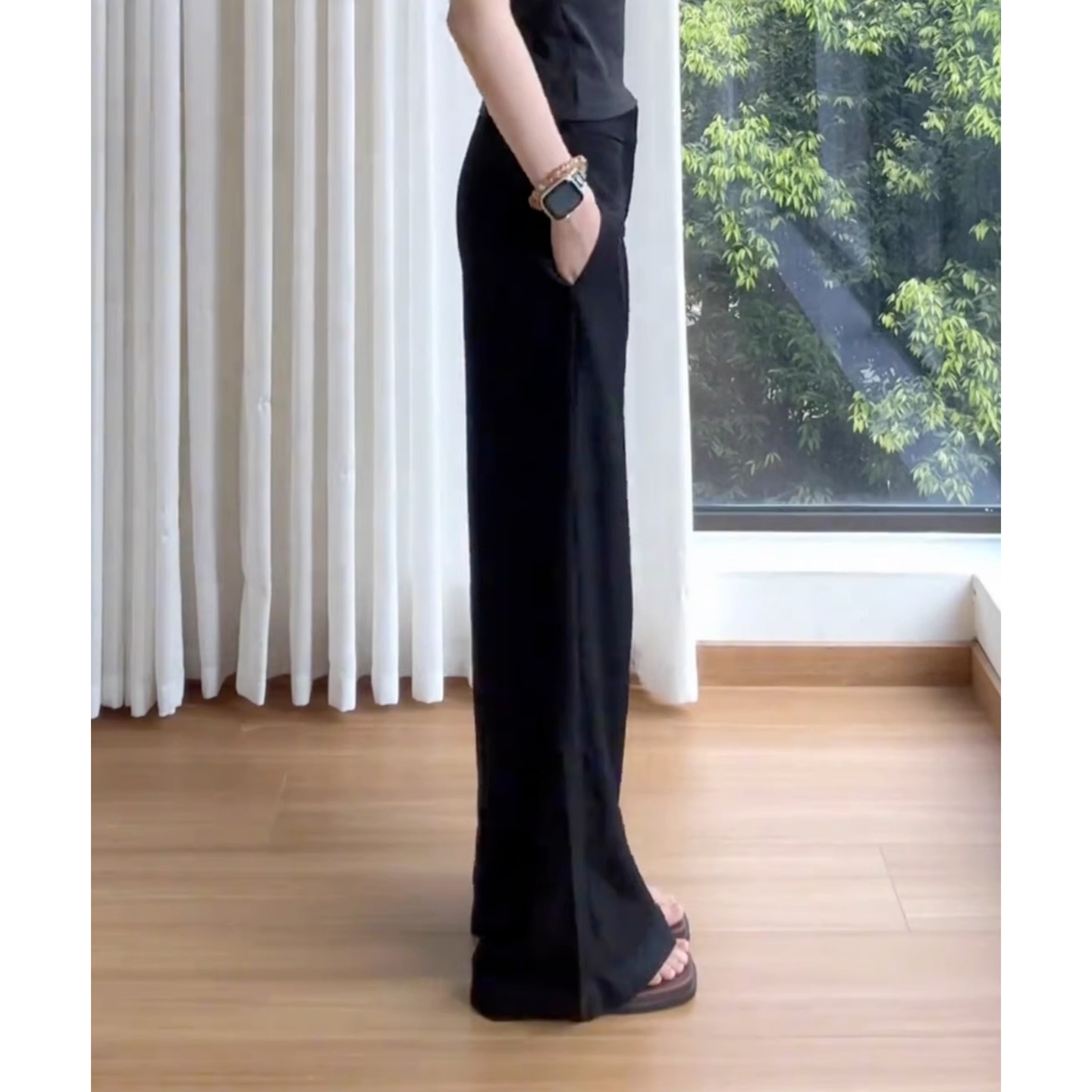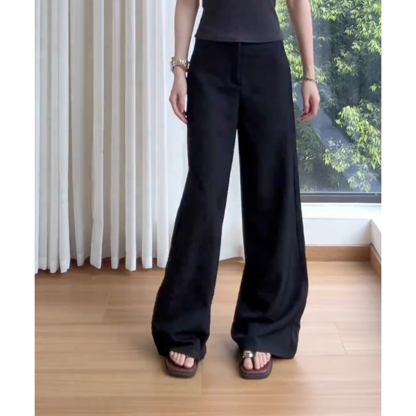 简单气质欧货黑色净版中低腰阔腿裤女垂顺感休闲西装裤子流行新款