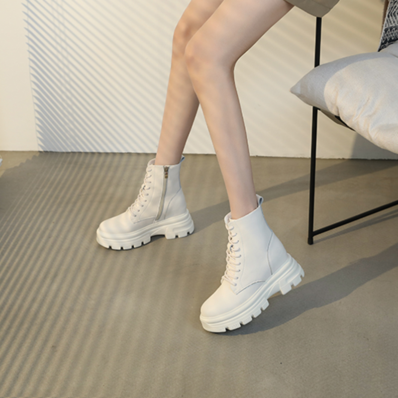 内增高女鞋8CM短靴马丁靴秋冬2025年新款春季真皮瘦瘦休闲厚底ins