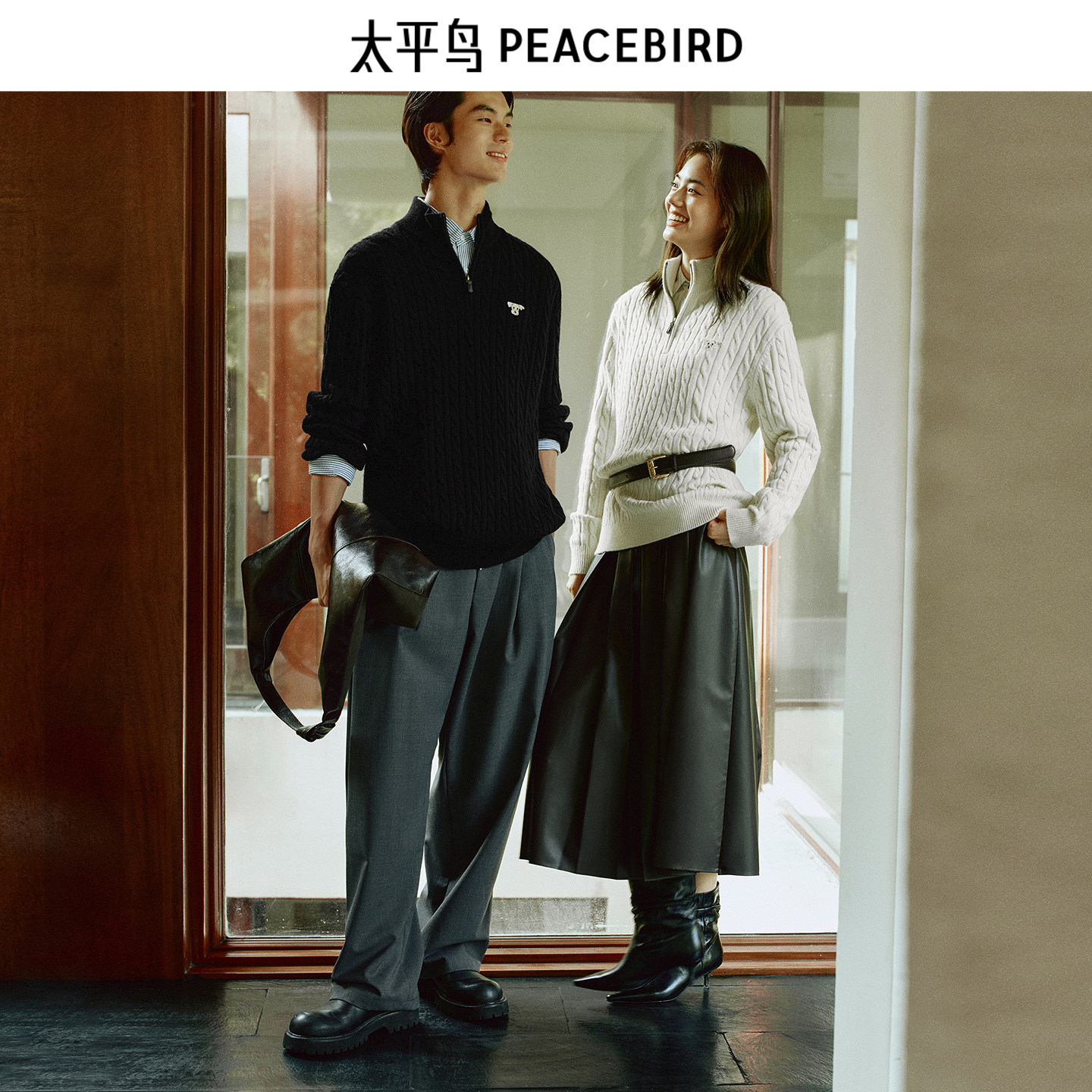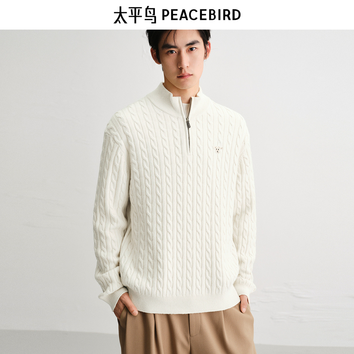 太平鸟男装 休闲毛衣2025秋季新款羊毛混纺纯色绞花肌理男士毛衫