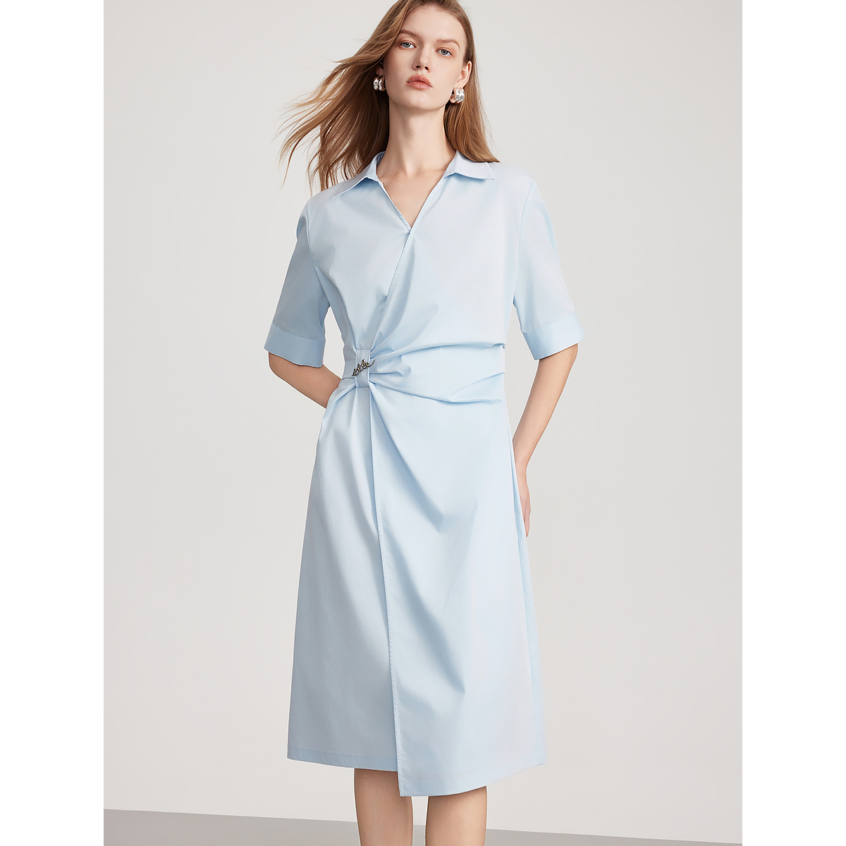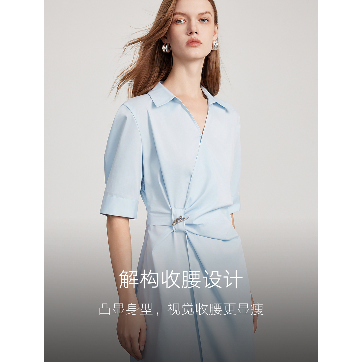 【自营】ELLE法式不规则收腰连衣裙女2025夏季新款设计感衬衫裙子