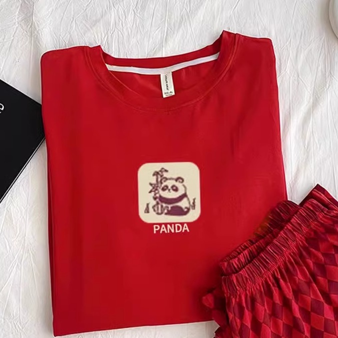 本命年红色喜庆情侣睡衣短袖春秋季纯棉卡通休闲大码家居服睡衣