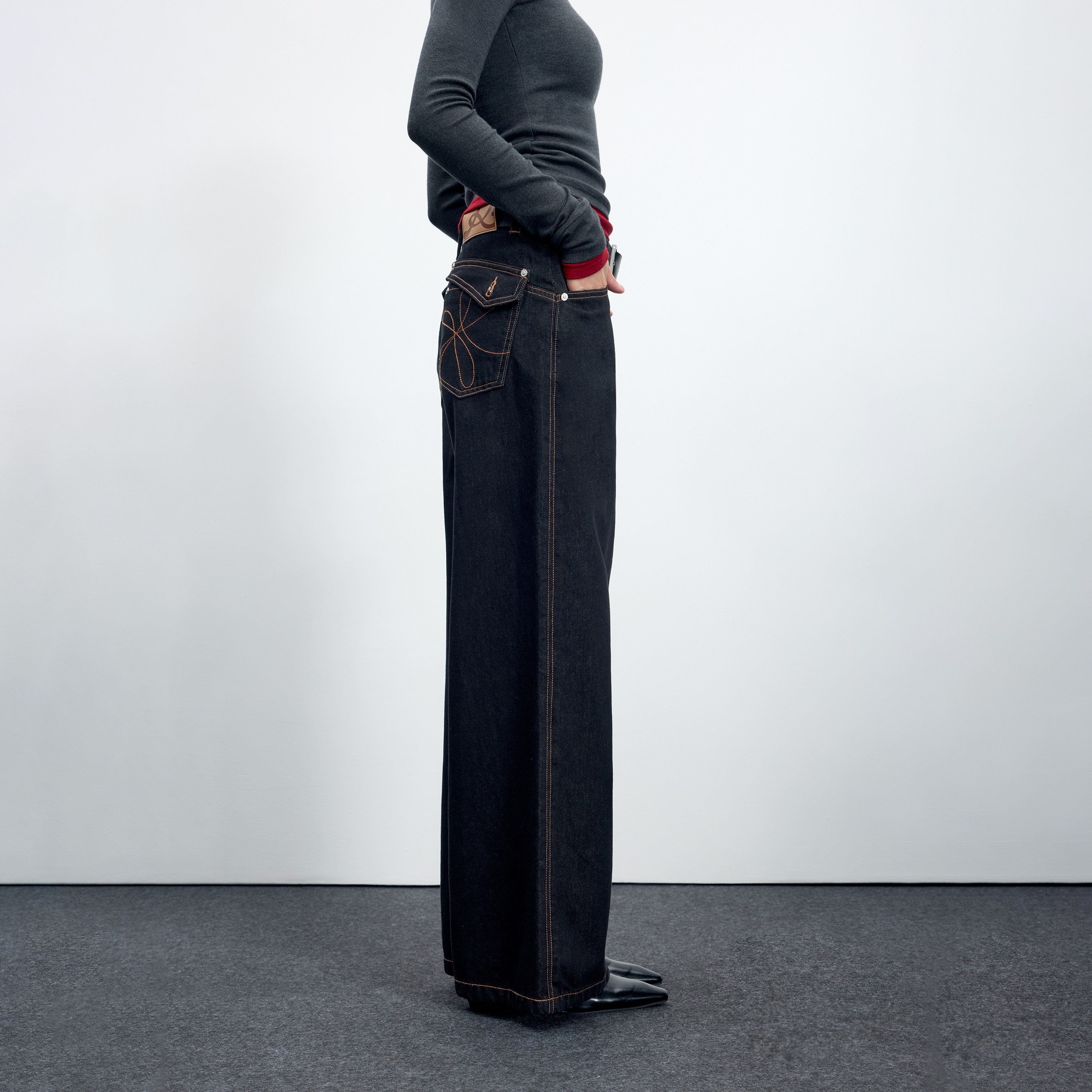 出逃赤岗西 美式原牛中低腰直筒牛仔裤女秋冬季宽松阔腿显瘦裤子