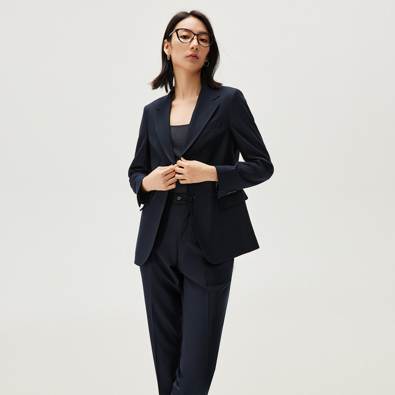 【含羊毛】HLA/海澜之家商务女士正装西服套装秋新款黑色职业套西