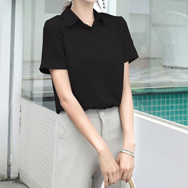 雪纺衬衫女职业正装夏季白色工作服短袖宽松上衣新款面试衬衣不透