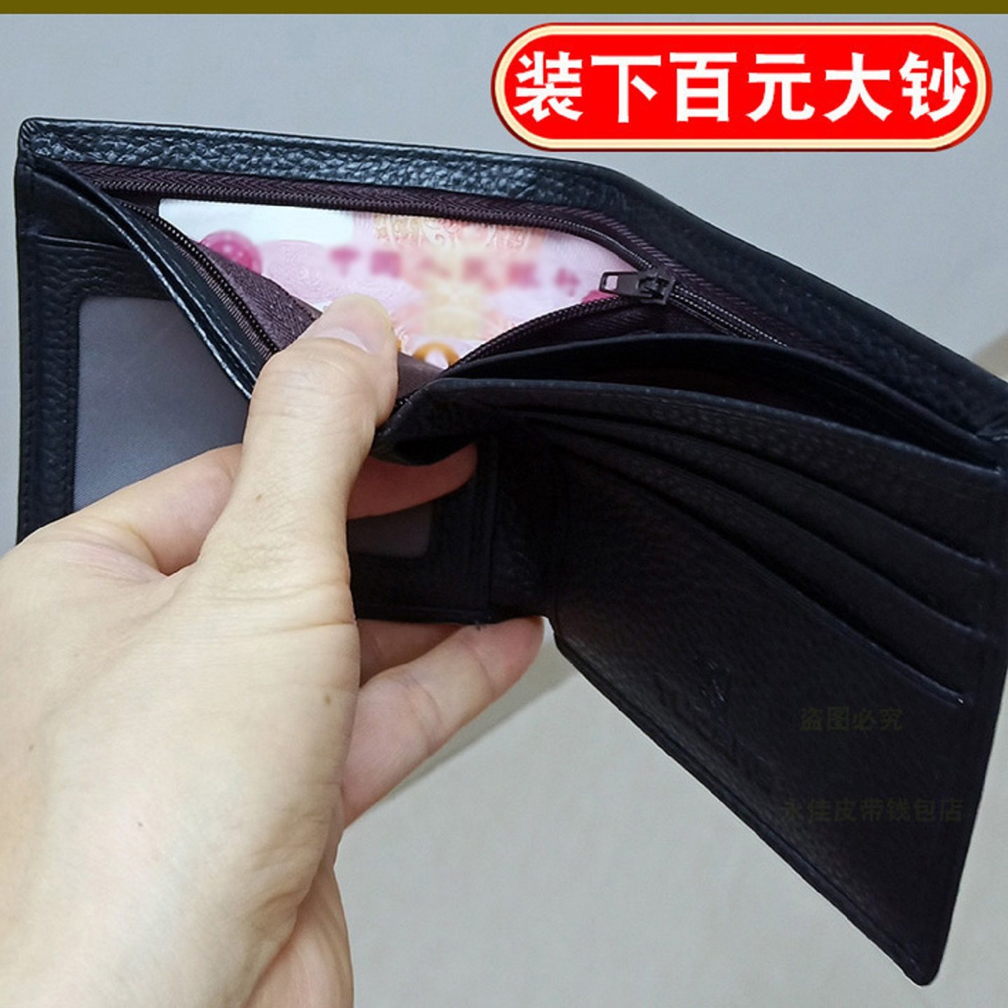 内带拉链层真皮横款钱夹