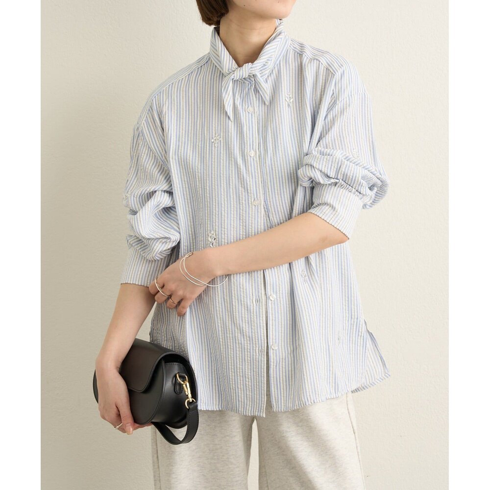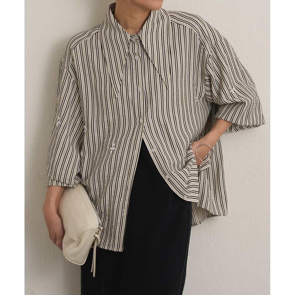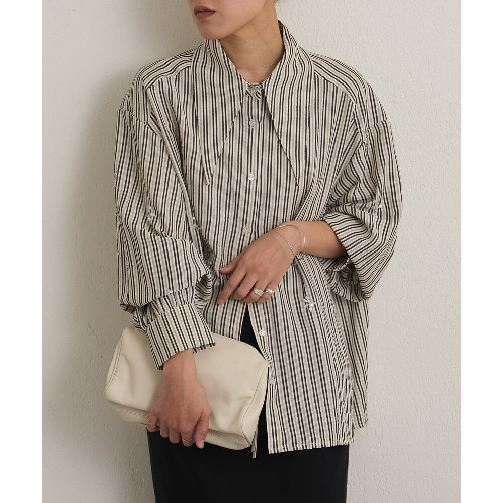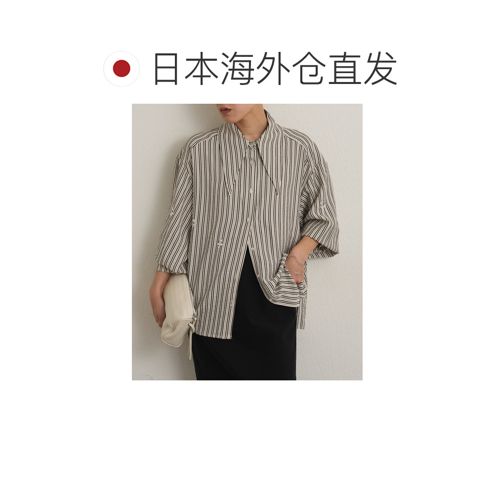 日本直邮Omekashi 女装 长翻领 缎面感条纹衬衫 OMS1061104A0001