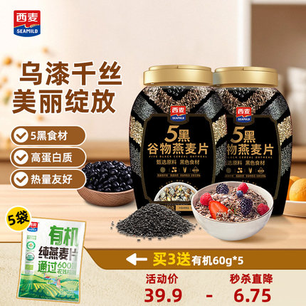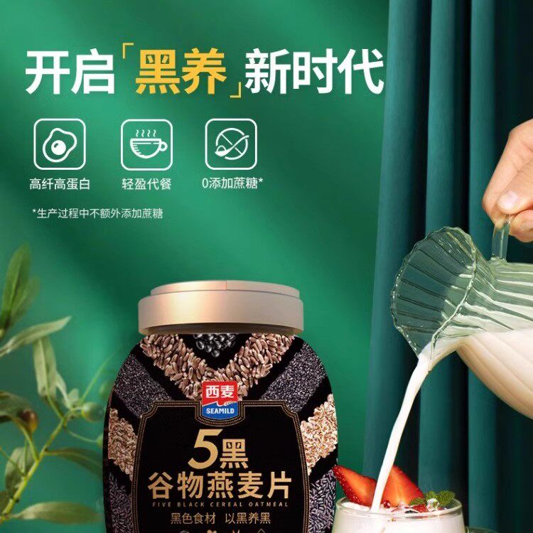 西麦五黑谷物燕麦片880g零添加蔗糖冲饮即食营养饱腹代餐懒人早餐