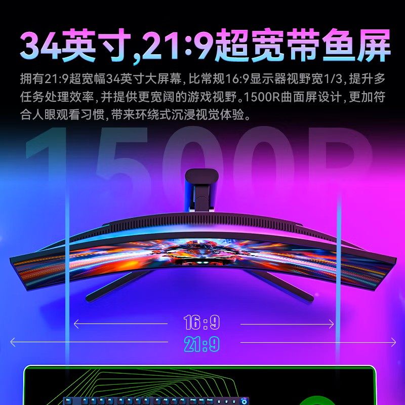 泰坦军团带鱼屏34英寸准4K200Hz曲面电脑屏160曲屏240游戏C34A1R+
