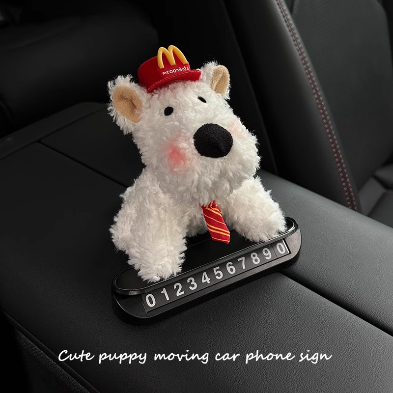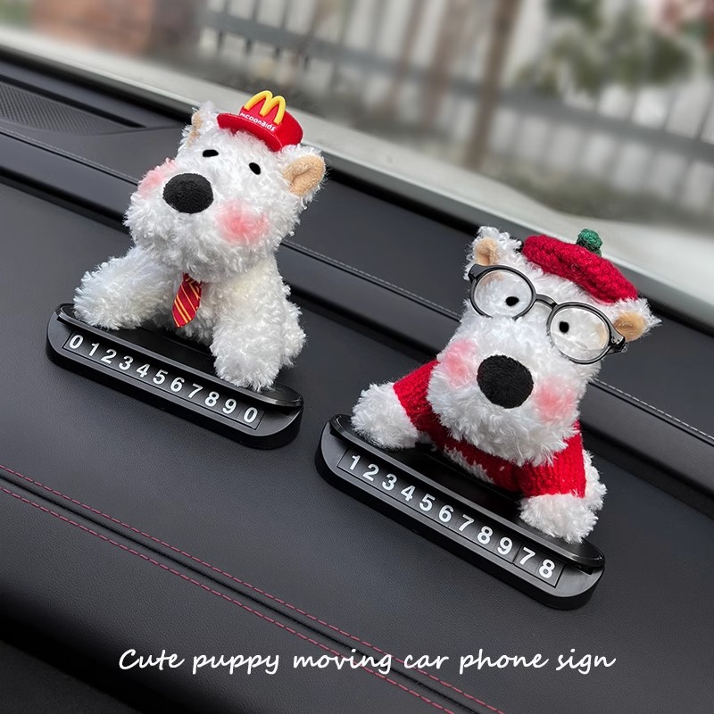2025新款西高地小狗汽车临时停车号码牌移车挪车电话车载装饰摆件