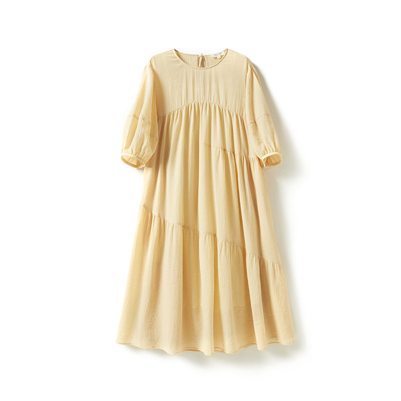 惬意华夫格肌理高支棉连衣裙中袖