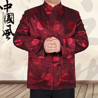 中国风男士夹克老人生日唐装祝寿爷爷装中老年人长袖大码秋冬外套