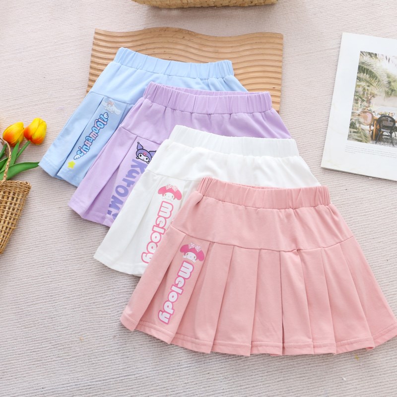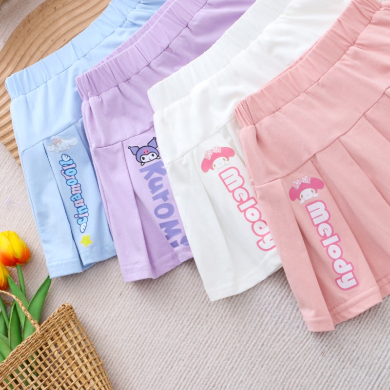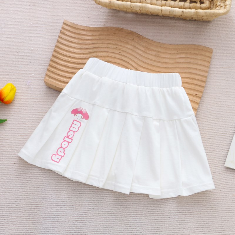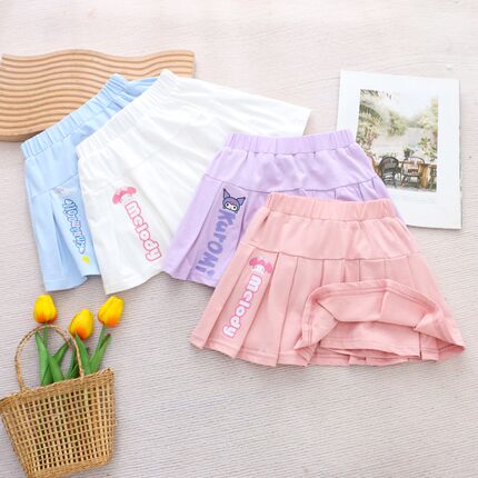 纯棉女童百褶半身裙宝宝夏季三分裙裤儿童薄款白色洋气卡通短裙子