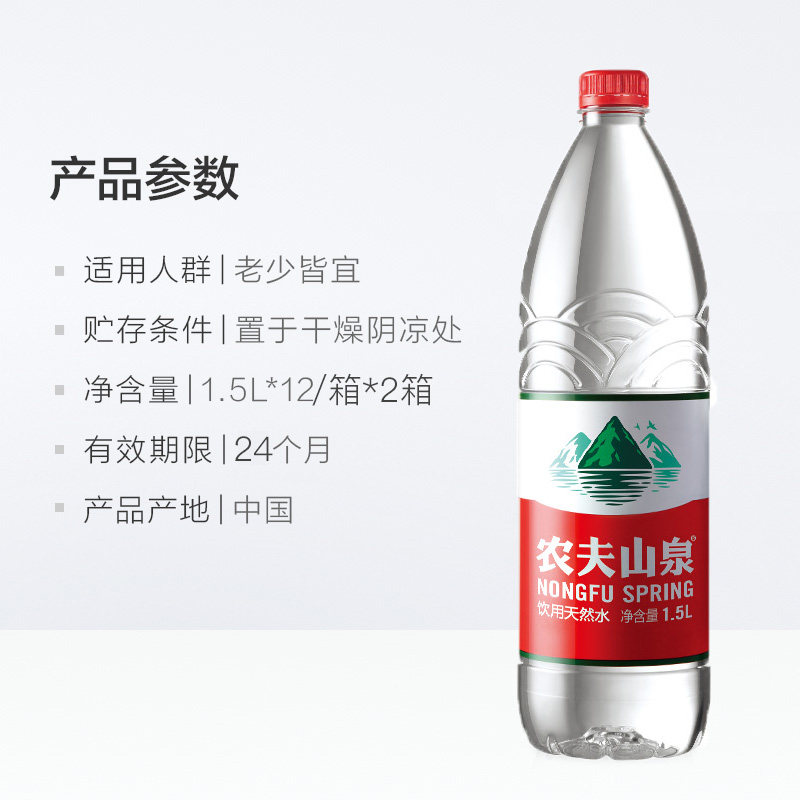 农夫山泉1.5l*12瓶整箱批特价大瓶弱碱性天然饮用水1.5升非矿泉水