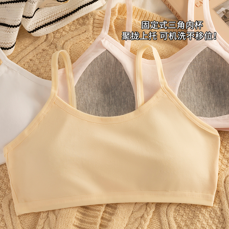 纯棉内衣女发育期显小吊带小背心无痕抹胸固定杯少女文胸A14聚拢