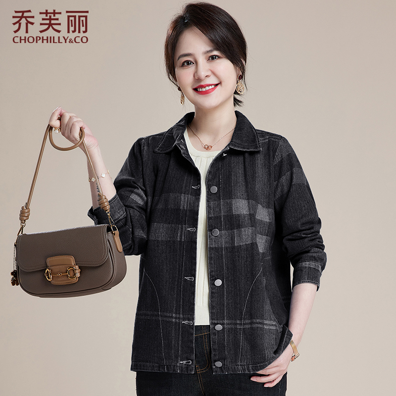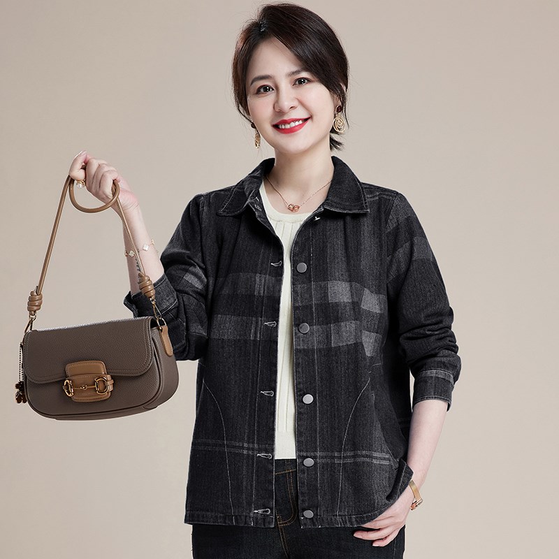 中年妈妈春秋洋气牛仔外套短款2023春装新款中老年衬衫女长袖上衣