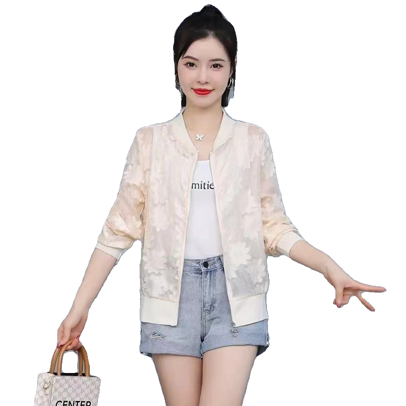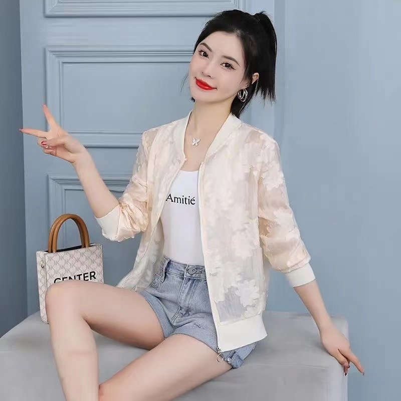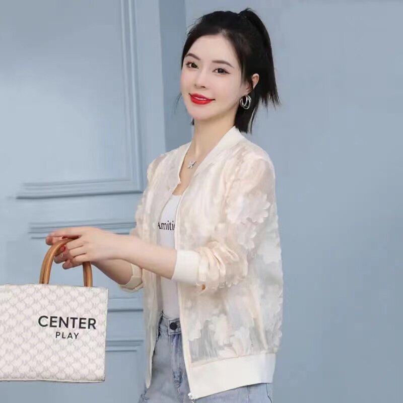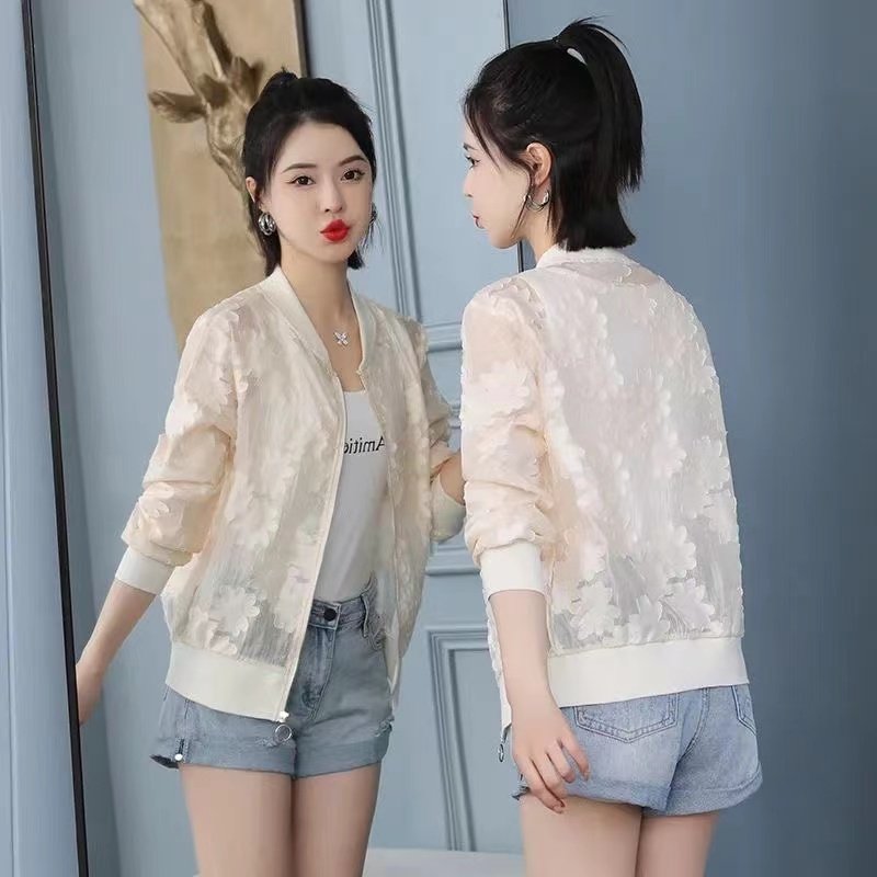 夏季蕾丝防晒外套女士轻薄透气宽松百搭开衫短款棒球服防晒衣外穿