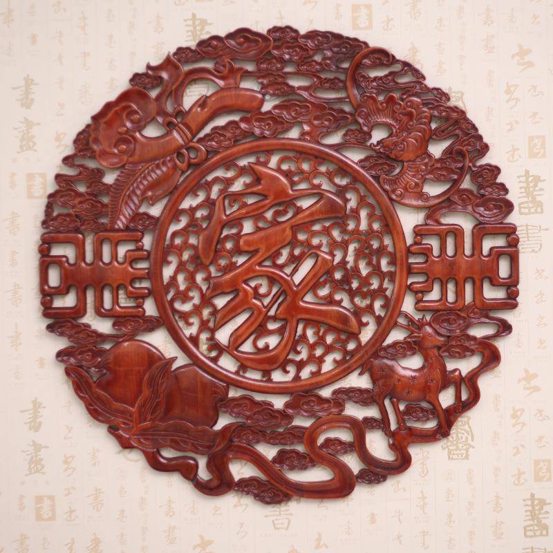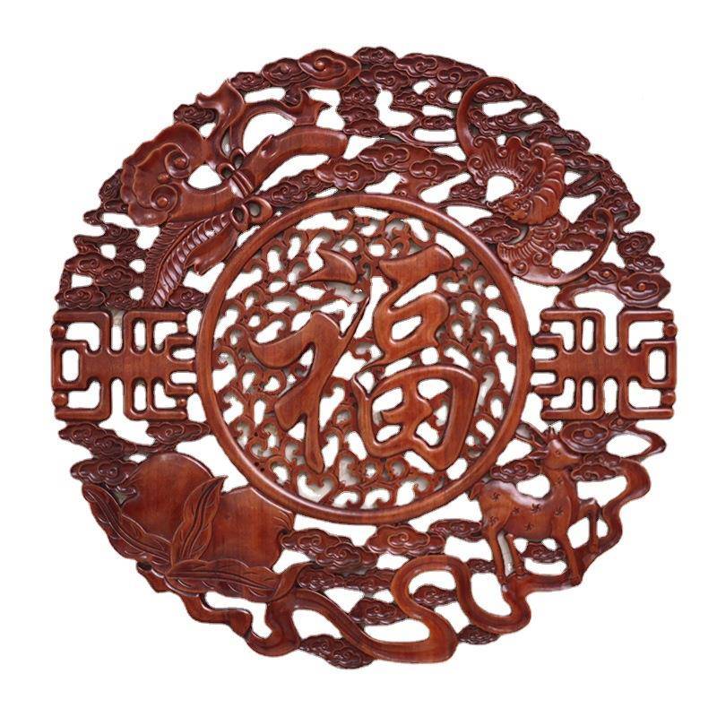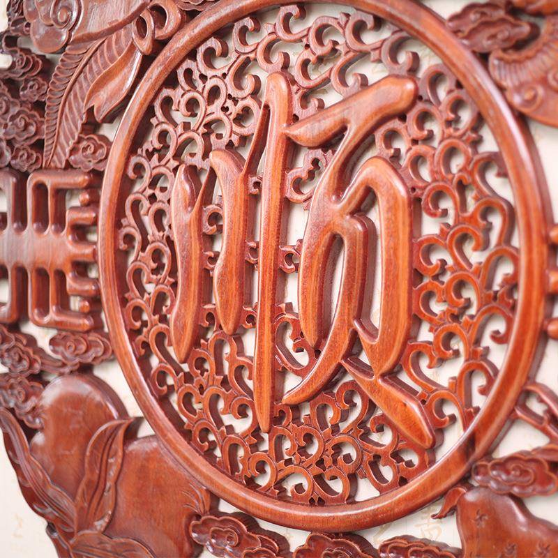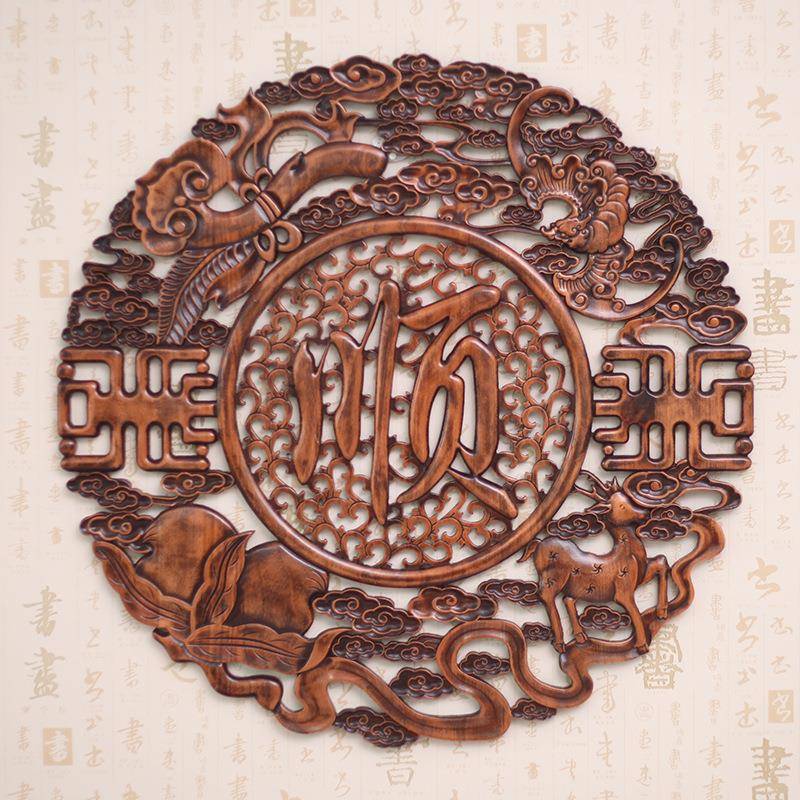 东阳木福雕挂件玄关客实厅背墙香樟木0417圆形家和顺景字木质特价