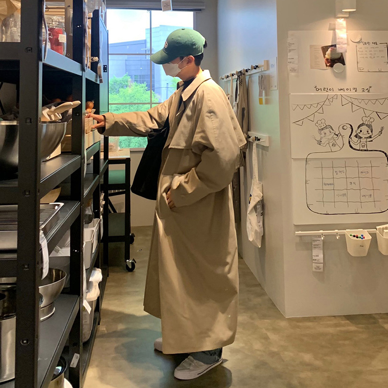 秋季新款风衣男长款韩版英伦风高级感系带青年男生帅气大衣外套潮