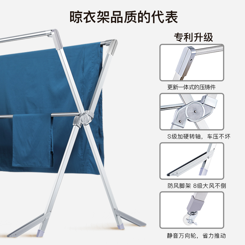 晾衣架落地折叠室内阳p台不锈钢晾衣杆室外家用凉挂衣架晒被子神