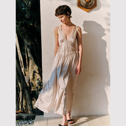 TOP家 巴洛克回忆 法式浪漫假日风情重工斜裁沙漏型 全真丝连衣裙