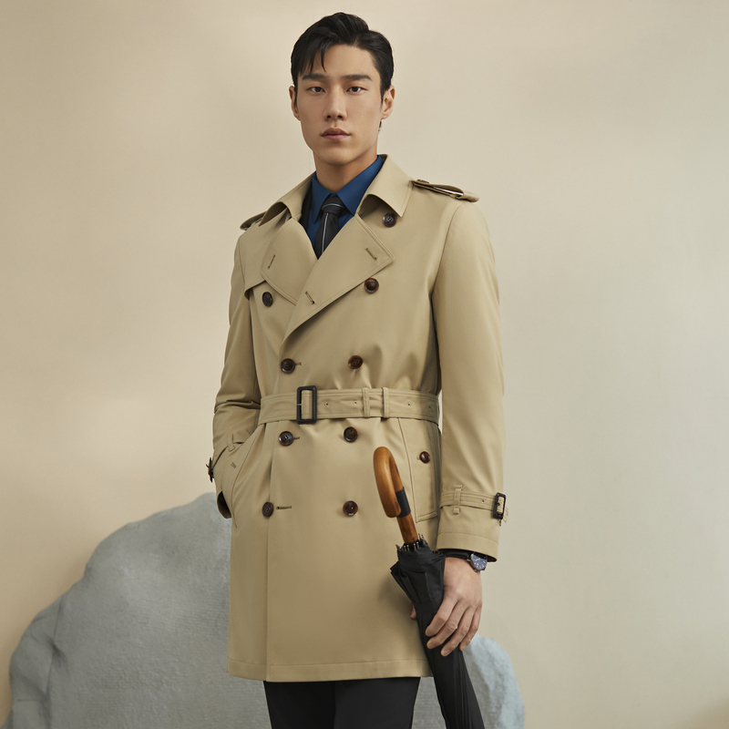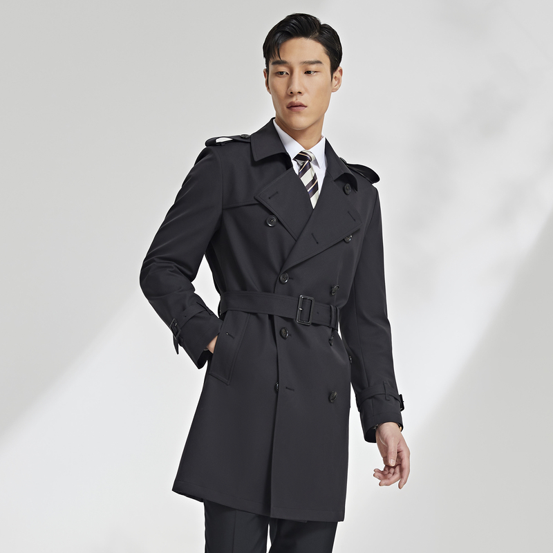 雅戈尔风衣春男士新款官方商务休闲英伦复古双排扣长款外套