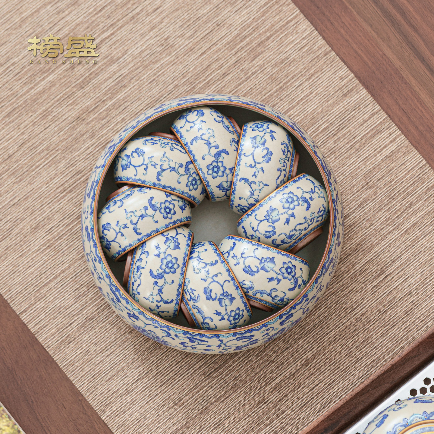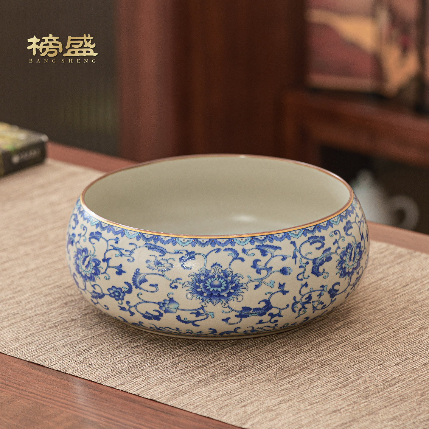 青花汝窑缠枝莲大容量茶洗