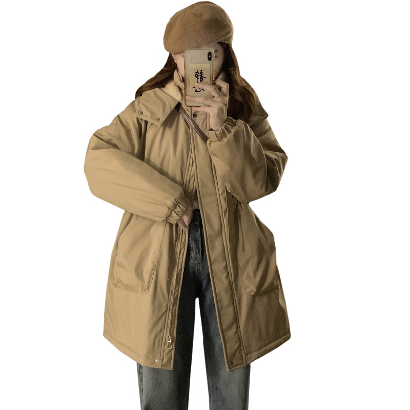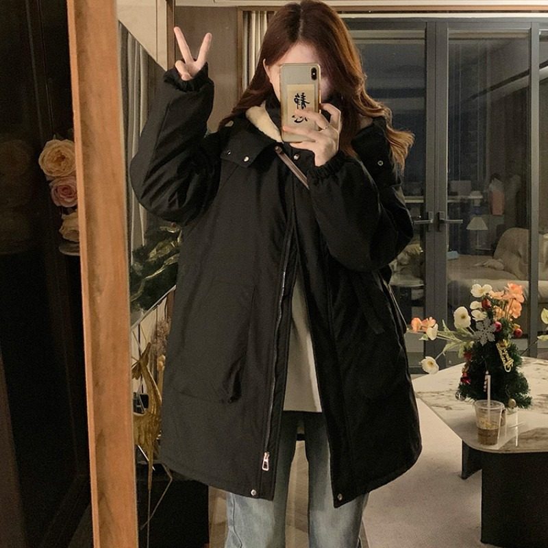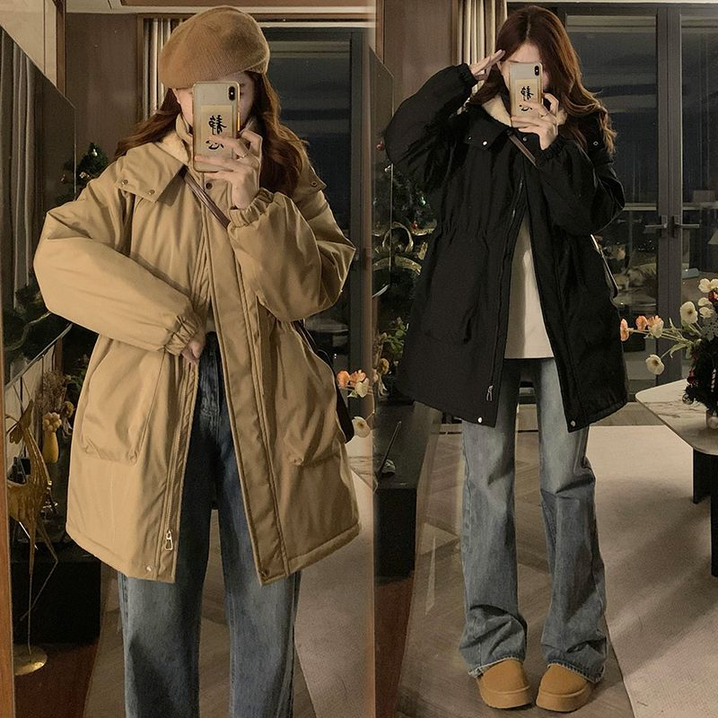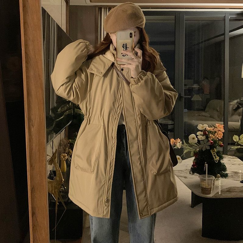 大码胖mm中长款棉衣棉服女冬季韩版学生宽松收腰加棉加绒加厚外套