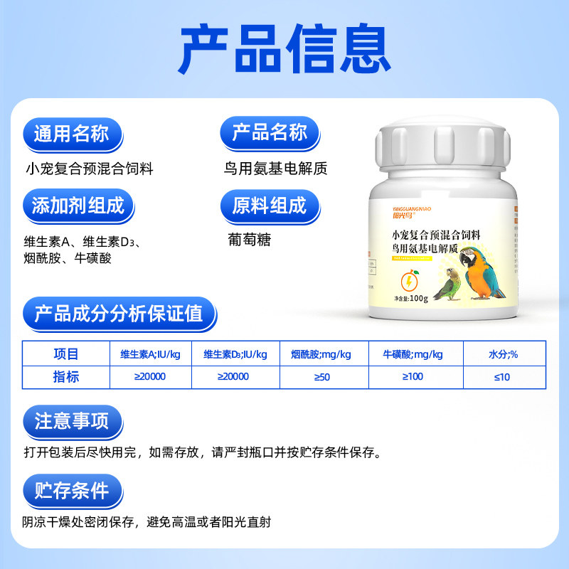 阳光鸟鹦鹉电解质补充能量营养维生素缓解抗应激鹦鹉专用电解质粉