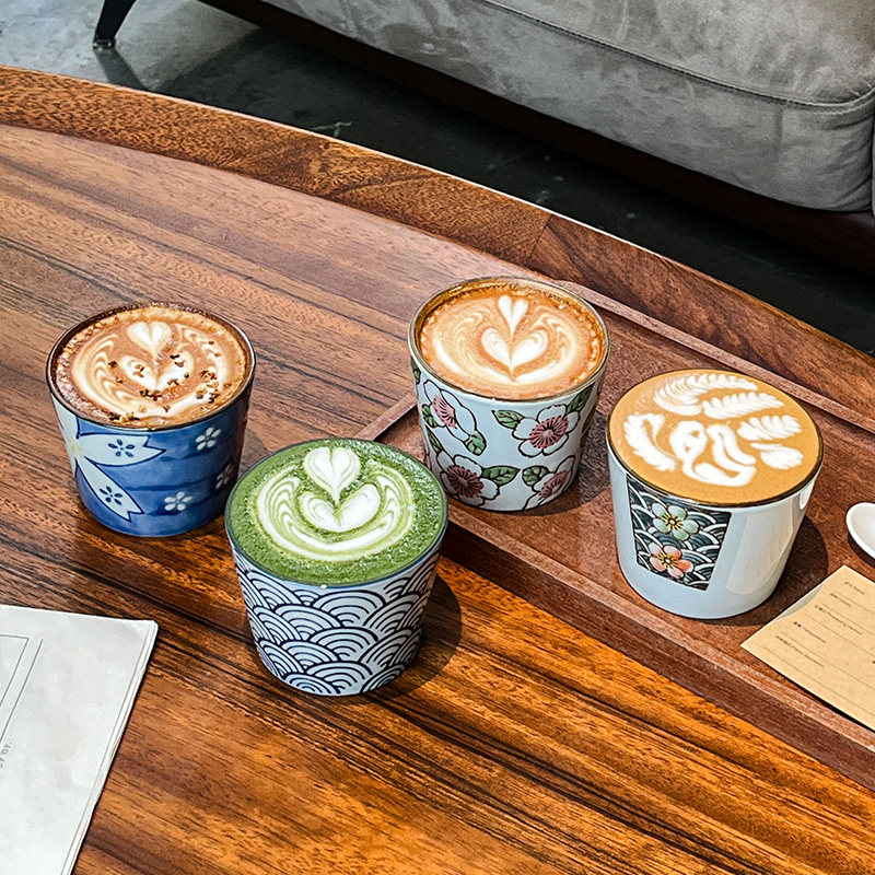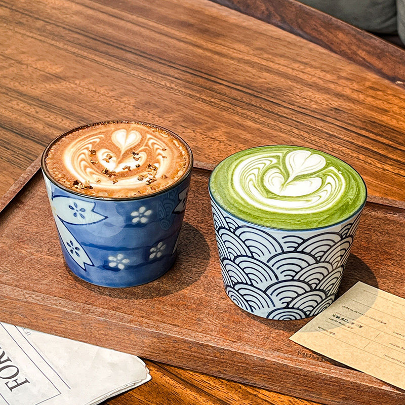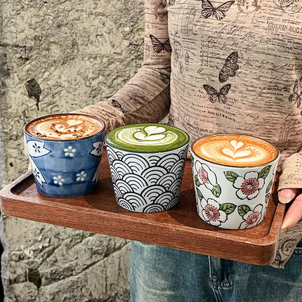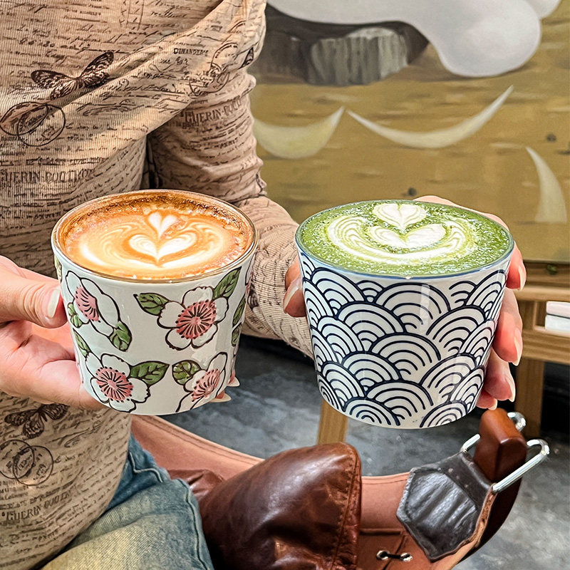 日式复古陶瓷拉花咖啡杯茶杯功夫茶具ins风简约拿铁杯早餐牛奶杯