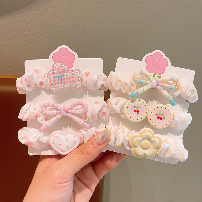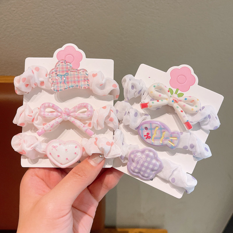 卡通花朵印花小肠发圈三条装新款可爱奶油彩色发绳甜美小清新发饰