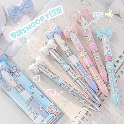 RosyPosy柔设史努比双色中性笔多色笔红笔黑笔签字笔高颜值ins风