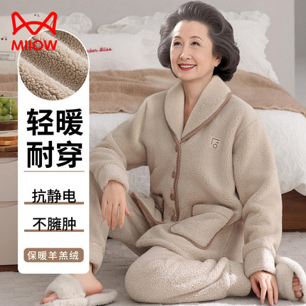 珊瑚绒睡衣女秋冬加绒加厚法兰绒2025新款中老年妈妈50多岁家居服