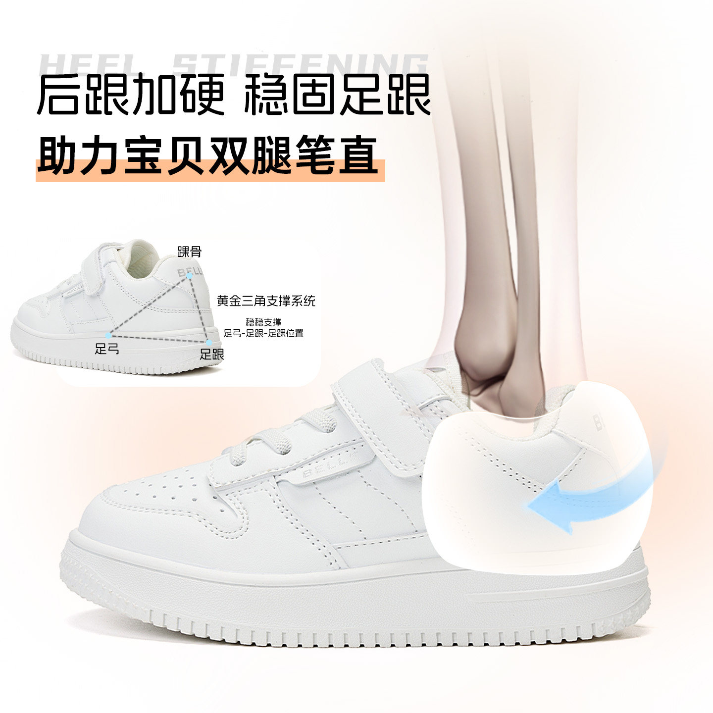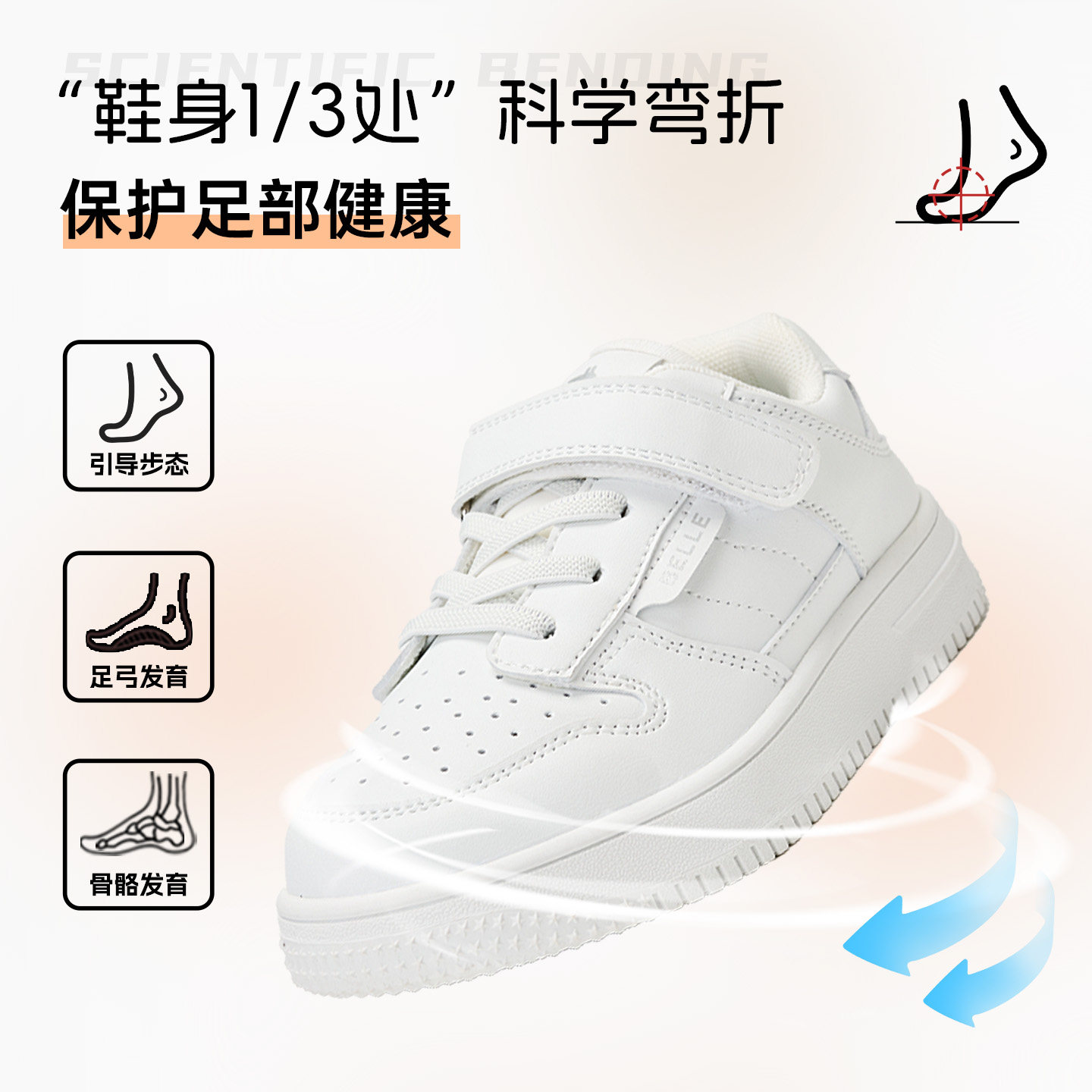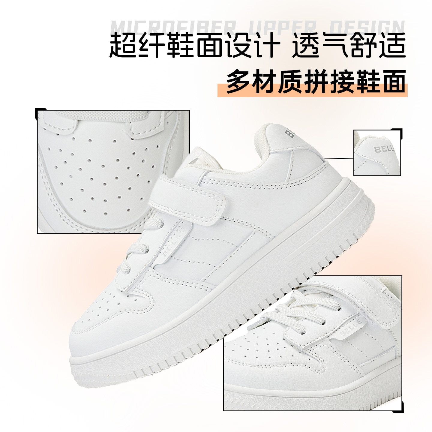 百丽童鞋板鞋儿童小白鞋男童女童低帮防滑耐磨透气舒适软底防水