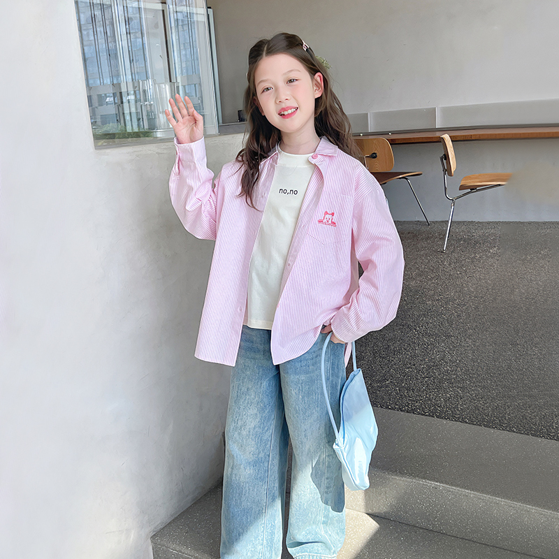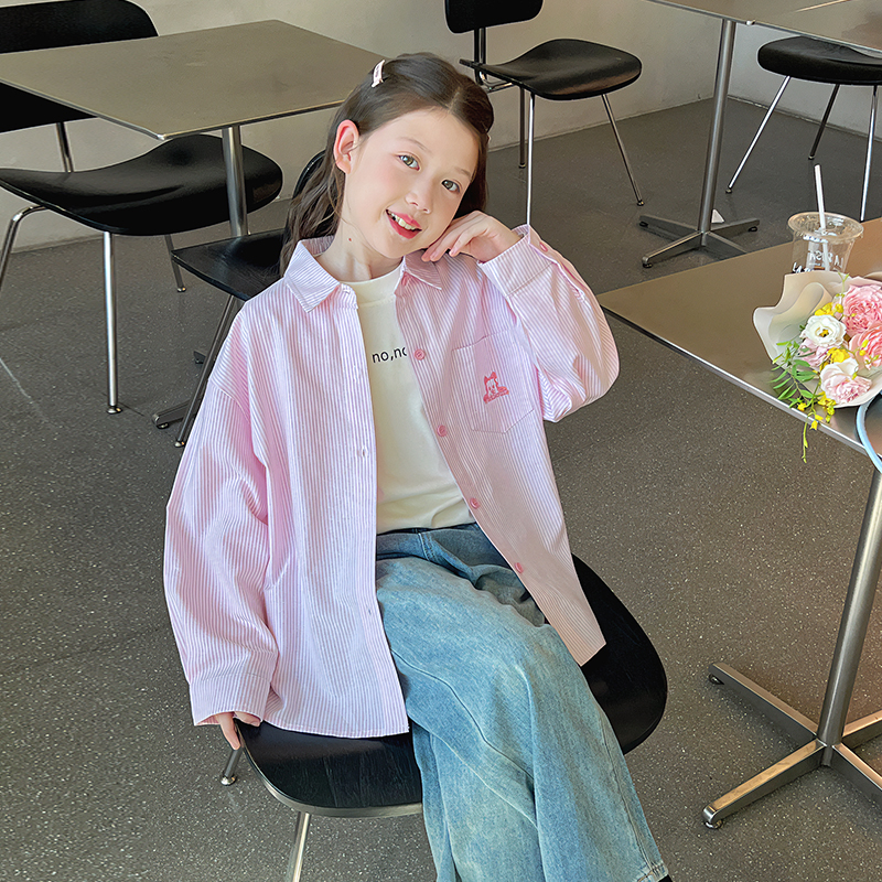 儿童洋气条纹衬衫女童宽松长袖衬衣大童开衫上衣2025春秋装新款