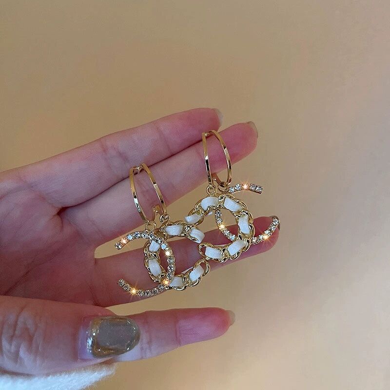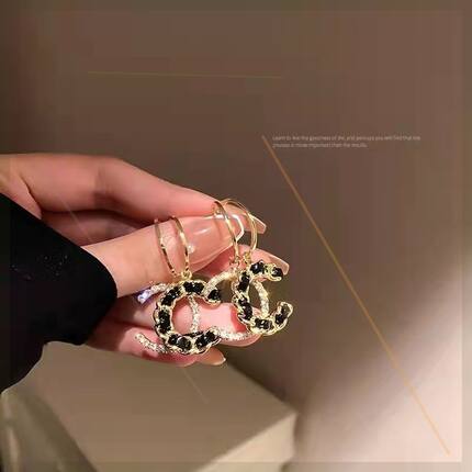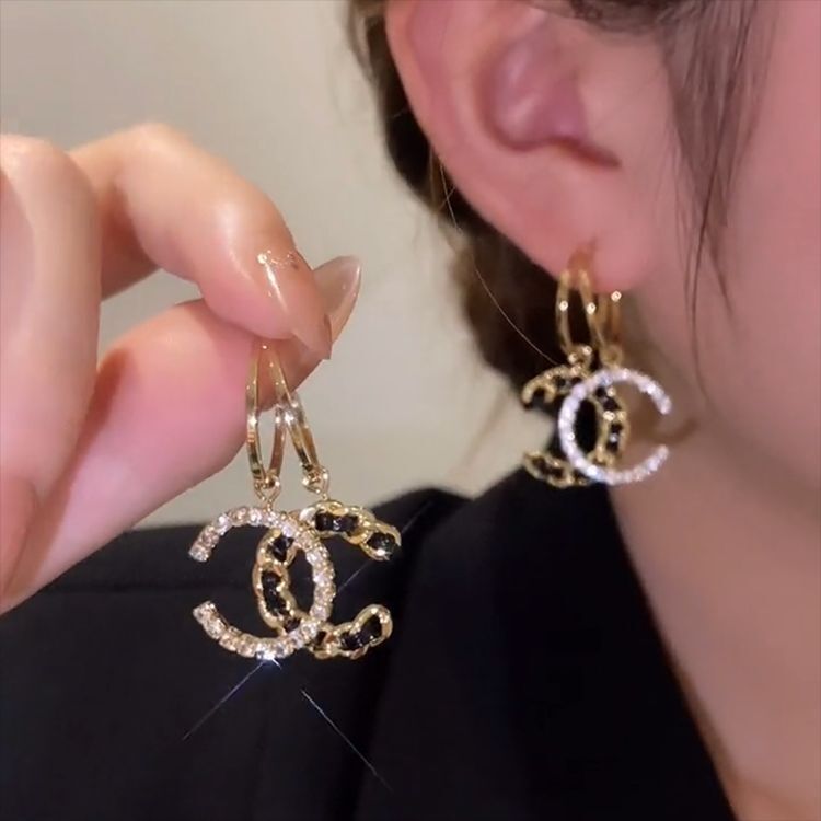 S925银针抖音同款C形字母日韩耳环气质个性黑白双色编织轻奢耳钉