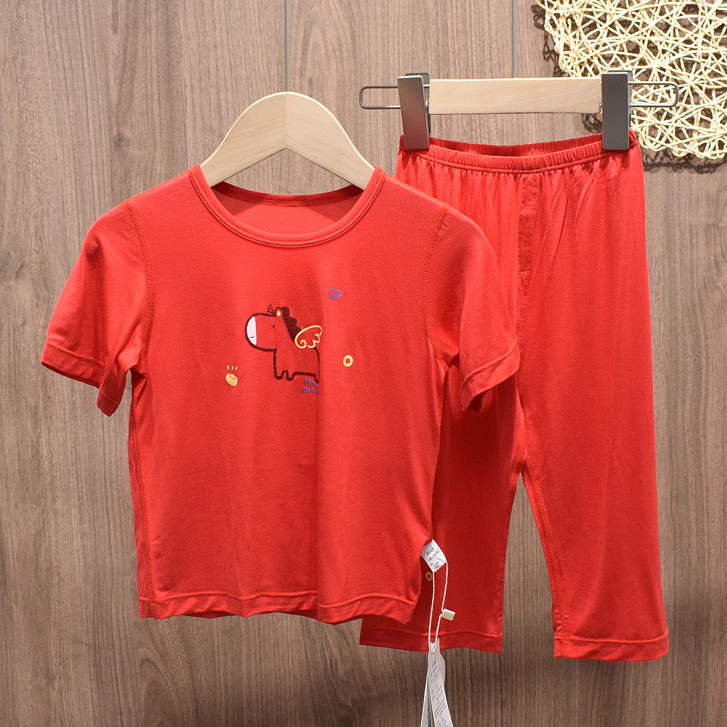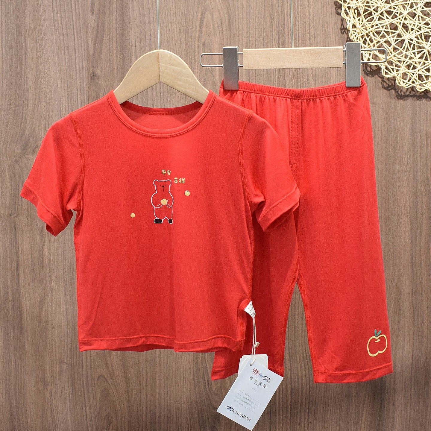 木木乐婴儿宝宝短袖家居服薄款男童女童新年大红色莫代尔半袖套装