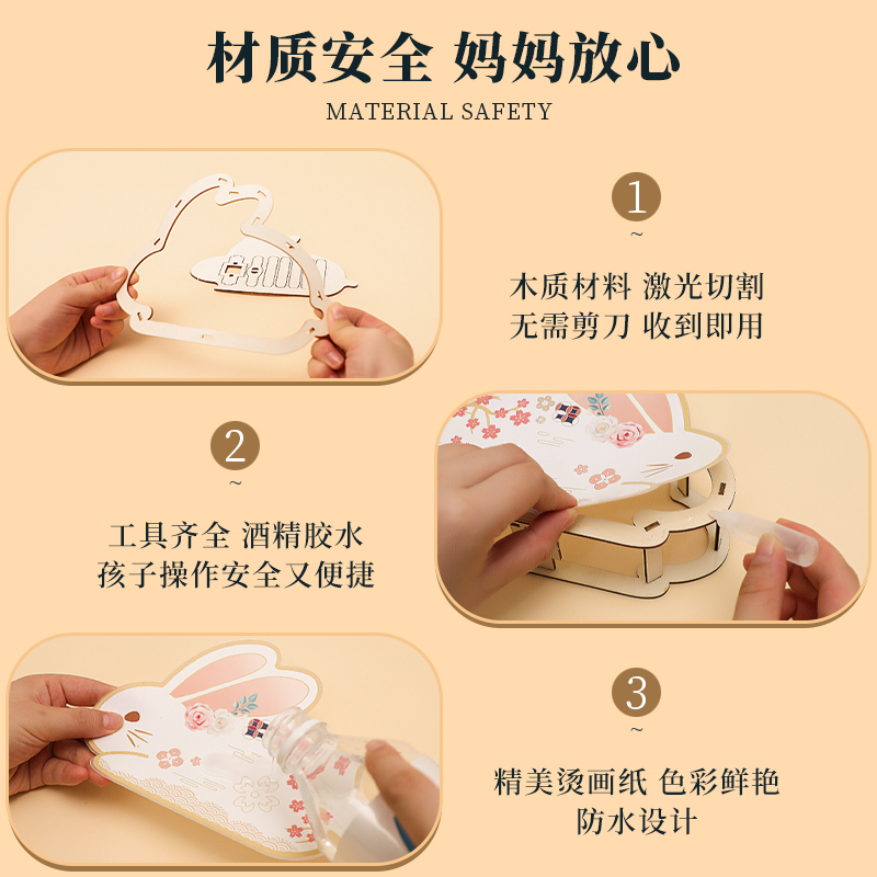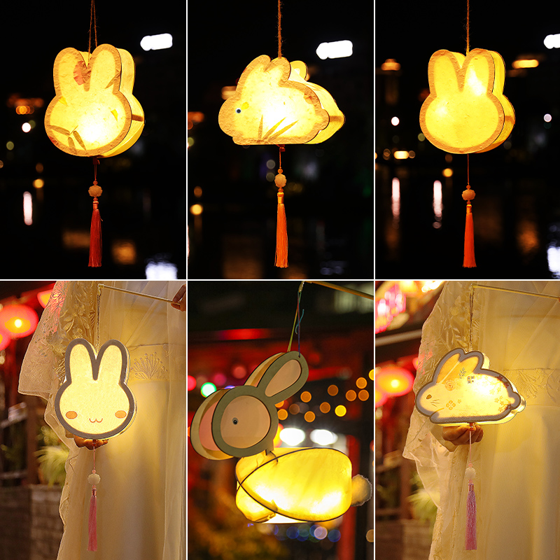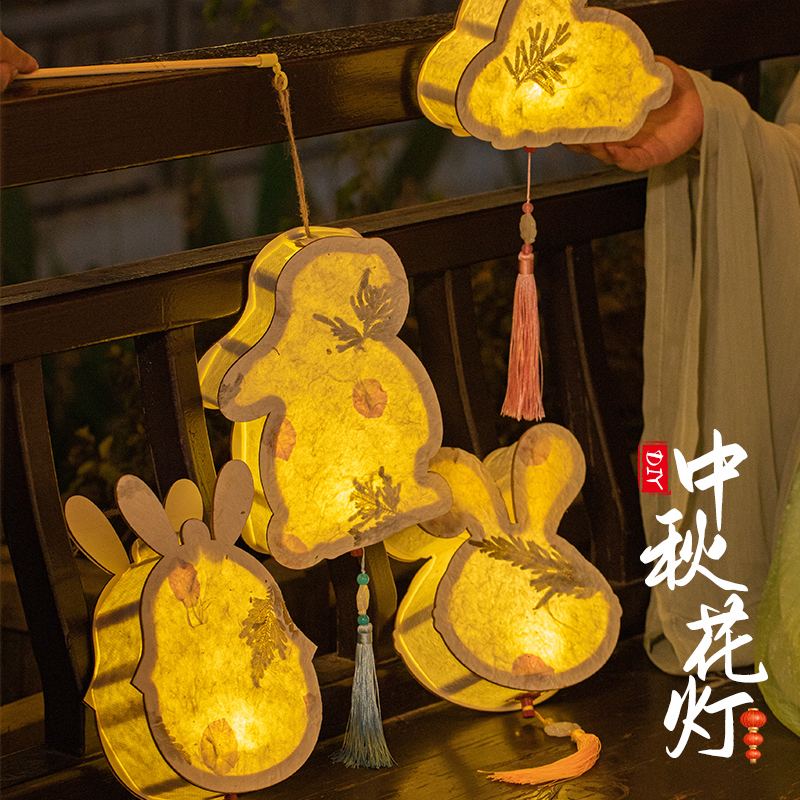中秋灯笼新款兔子灯儿童手工diy制作材料包手提发光古风花灯玉兔