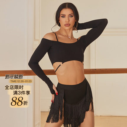 ZYM【蓝调 Night】上衣一字肩拉丁舞练功服冬装包边松紧带25111