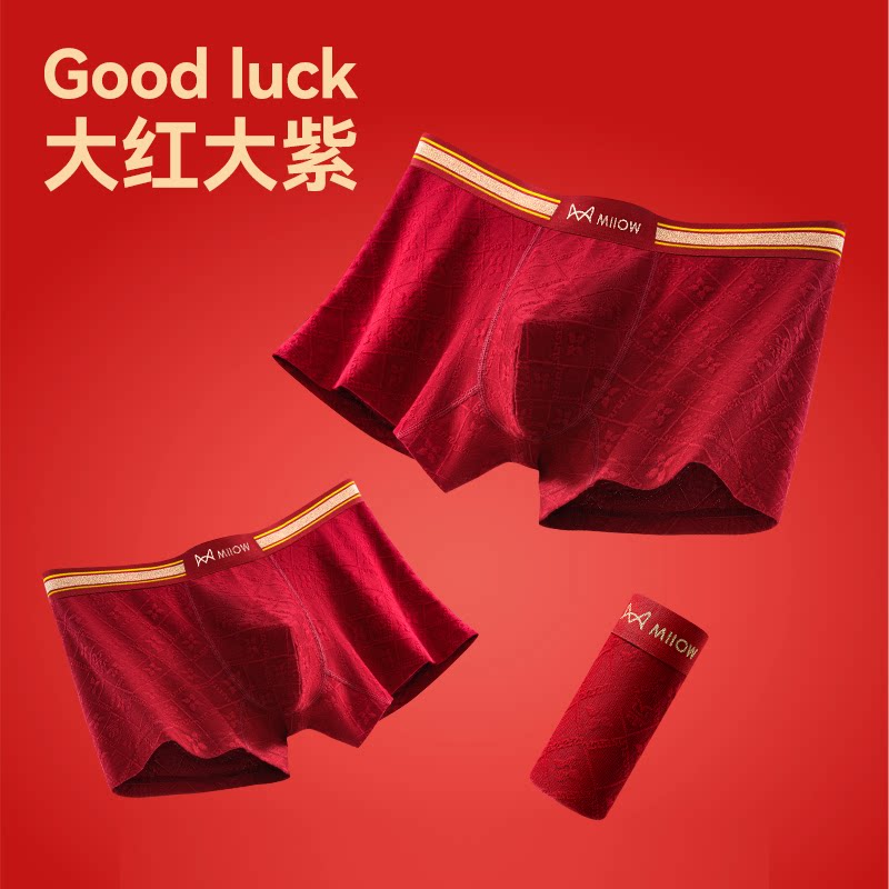 猫人本命年男士内裤红色平角短裤