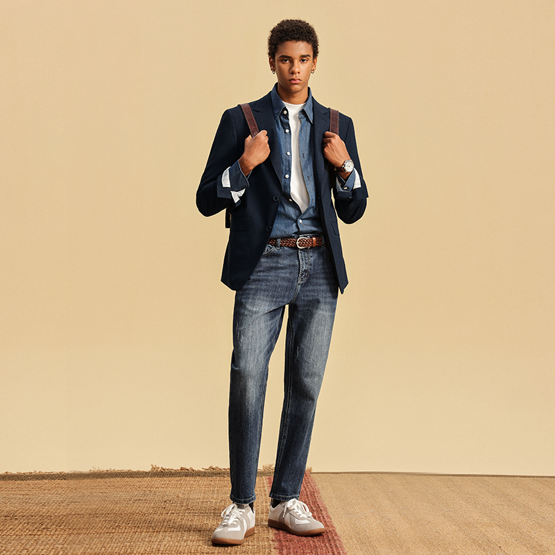 JDV男装春夏新品商场同款藏青色西装单排扣西服外套SMM4013