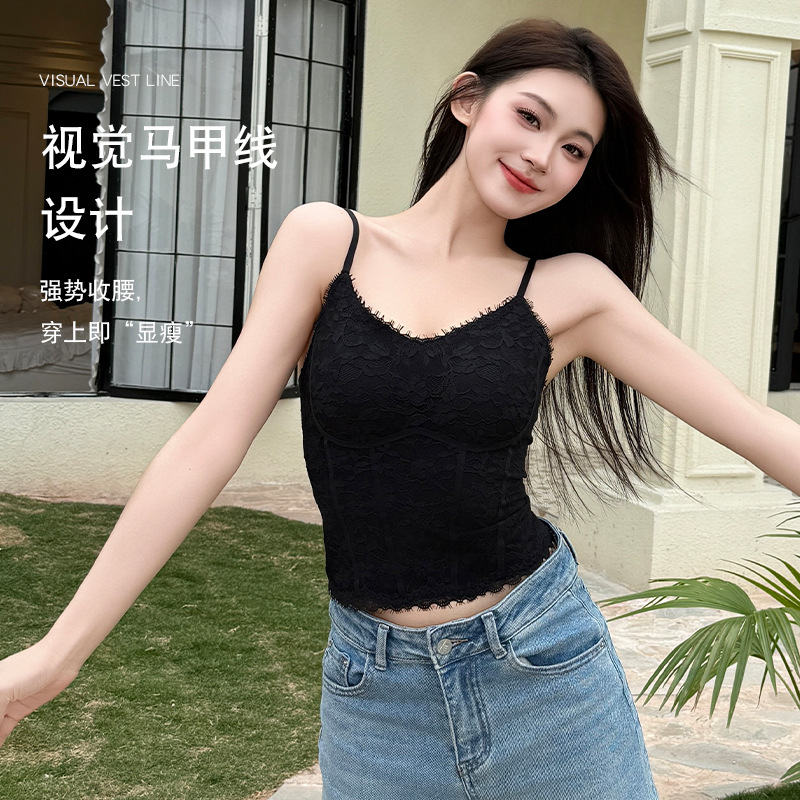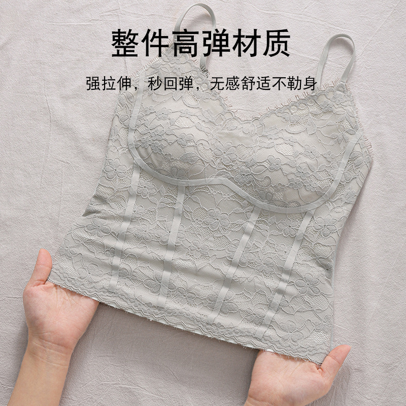 法式轻薄蕾丝夏季吊带背心女带胸垫免文胸打底可外穿透气抹胸内搭