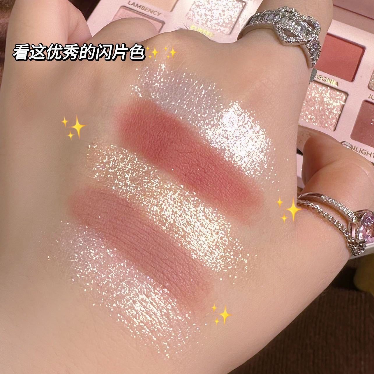 新款12色海棠花油画风粉棕眼影盘哑光珠光细闪大地色低饱和眼影盘