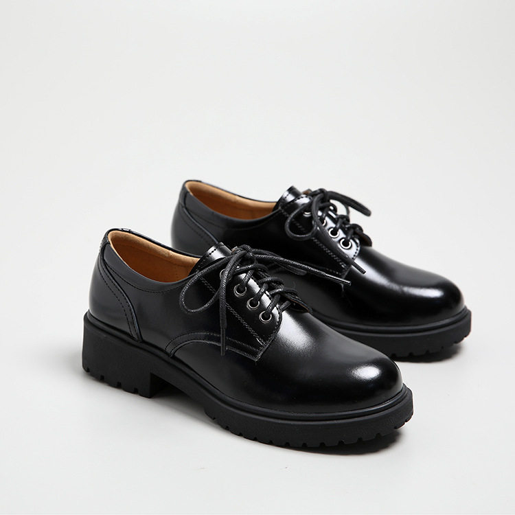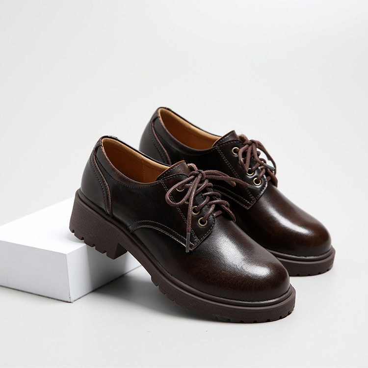 日系真皮英伦风小皮鞋女鞋圆头学院风ins森系单鞋厚底复古学生鞋