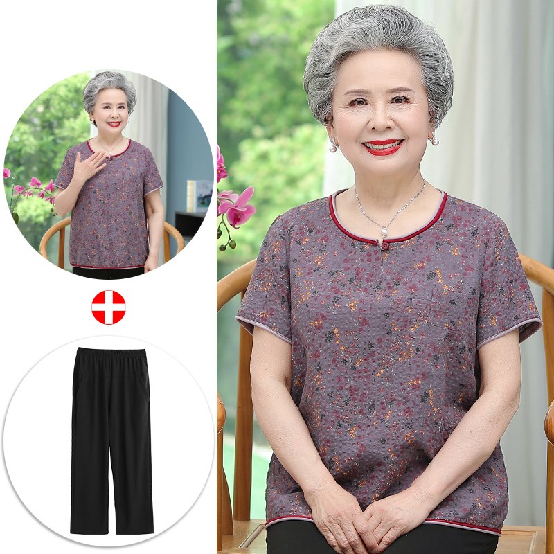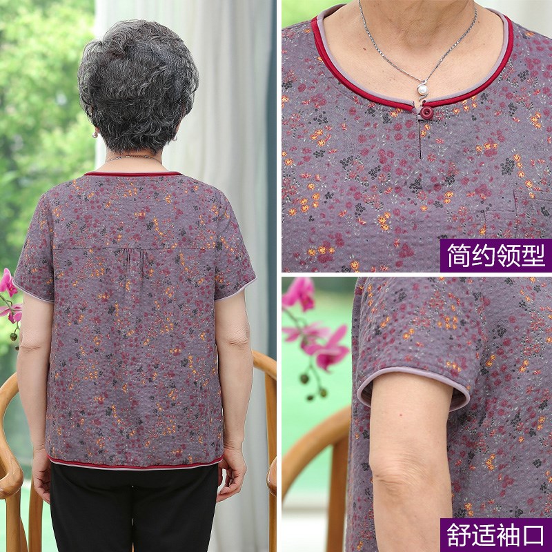 小个子奶奶夏装t恤中老年人衣服女70岁妈妈纯棉短袖上衣太太套装