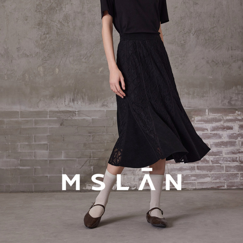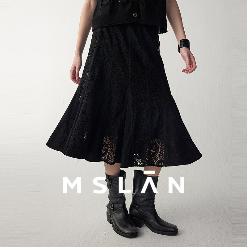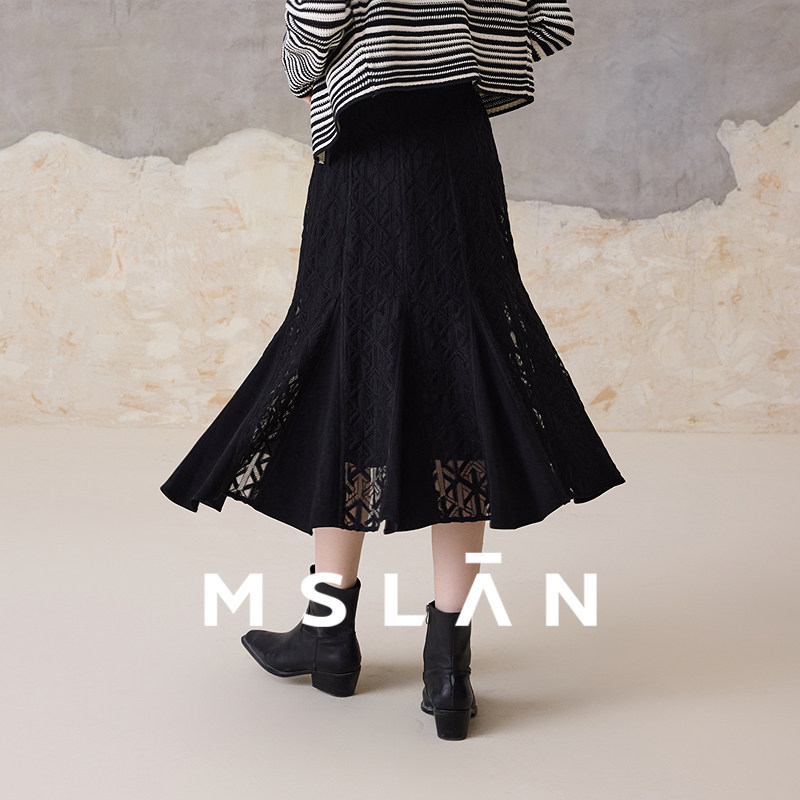 重工刺绣/MSLAN松弛感蕾丝拼接鱼尾裙半身裙高腰气质伞裙MFDQ5561